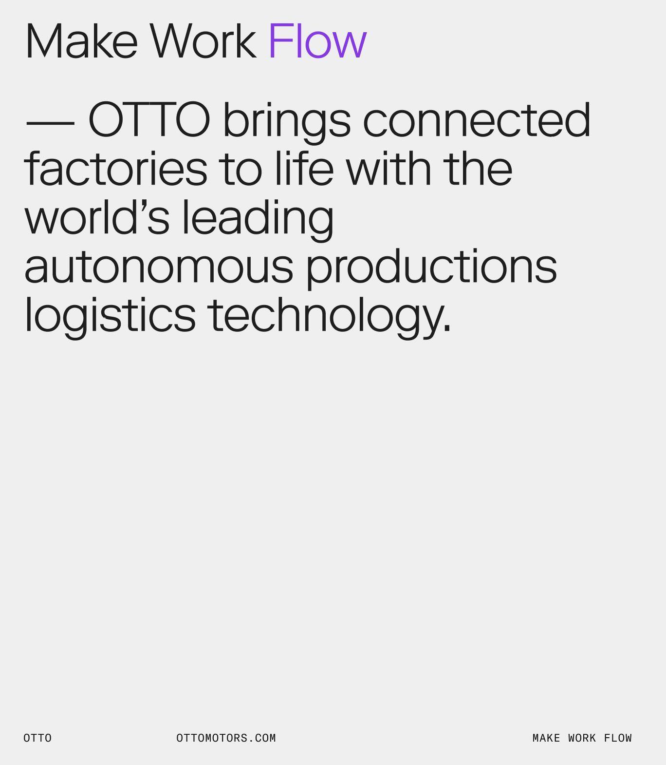 A start-up built on the ambition to rid the world of land mines, OTTO now serve the supply chains of multiple Fortune 500 companies. Prior to engaging with us, their proposition was largely based on innovation. But with copycat brands cropping up every other day in every other market, OTTO needed to carve out a new position that could both protect their legacy of innovation and establish them as the rightful category leaders. Our simple meme of “Make Work Flow” helped them to assert leadership in the category once more, securing their acquisition by Rockwell Automation in late 2024.